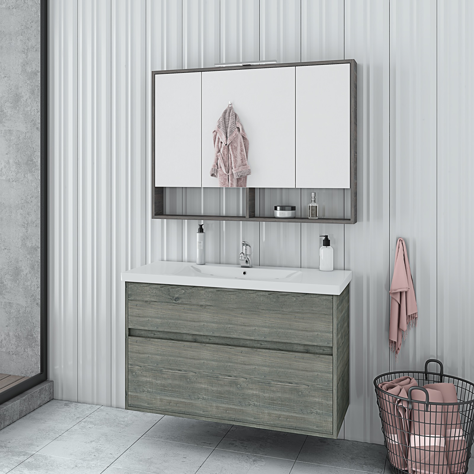 Καθρέπτης – Ενιαίος αποθηκευτικός χώρος – 2 πόρτες και εταζέρα 5KIN100SM (Π. 98 x B.12 x Y.73)