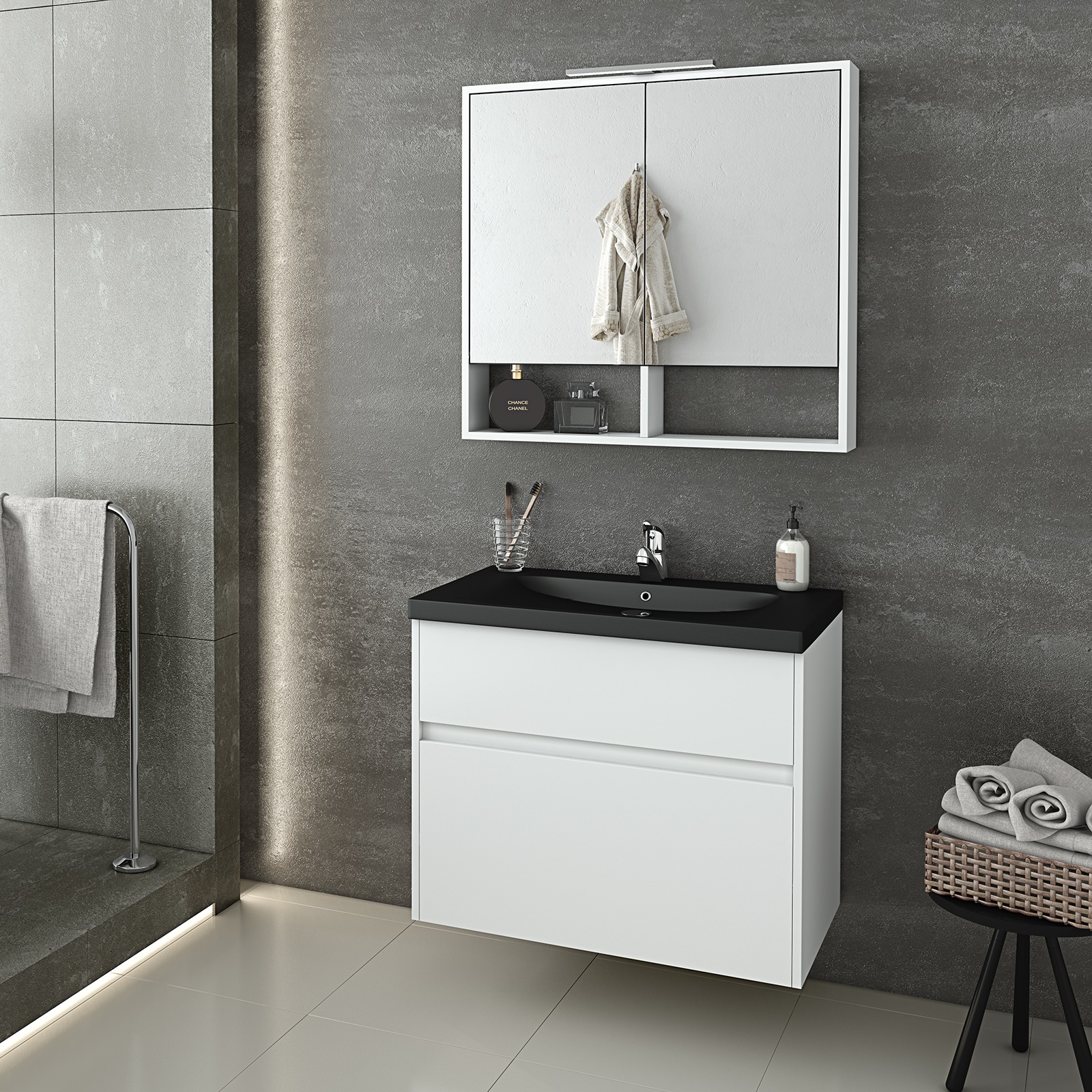 Καθρέπτης – Ενιαίος αποθηκευτικός χώρος – 2 πόρτες και εταζέρα 5KIN080WH (Π. 78 x B.12 x Y.73)