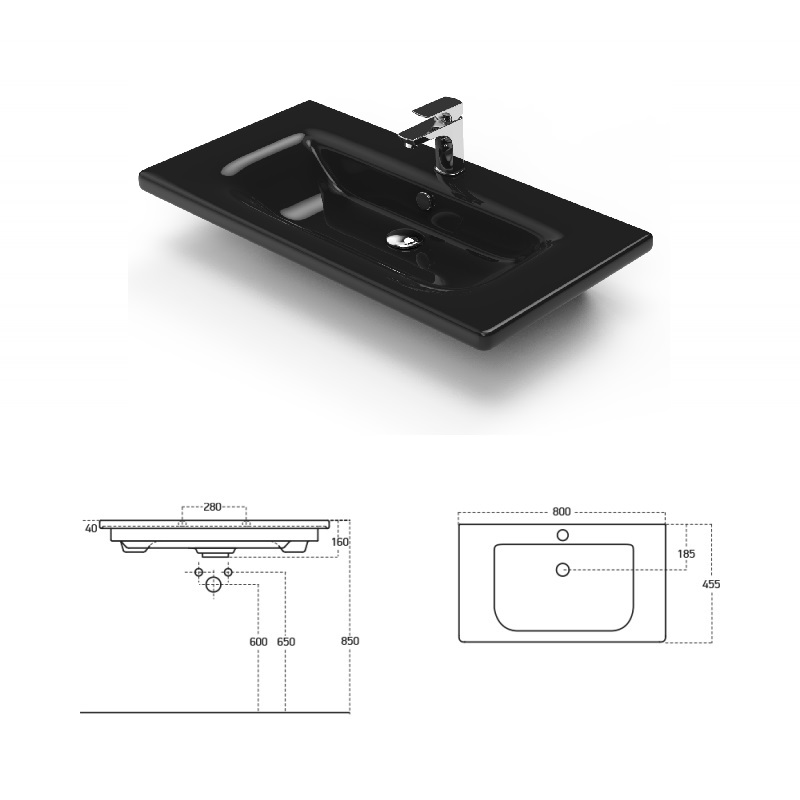 Νιπτήρας πορσελάνης – Προφίλ 4cm 6BSF080PC (Π. 80 x B.46 x Y.16)