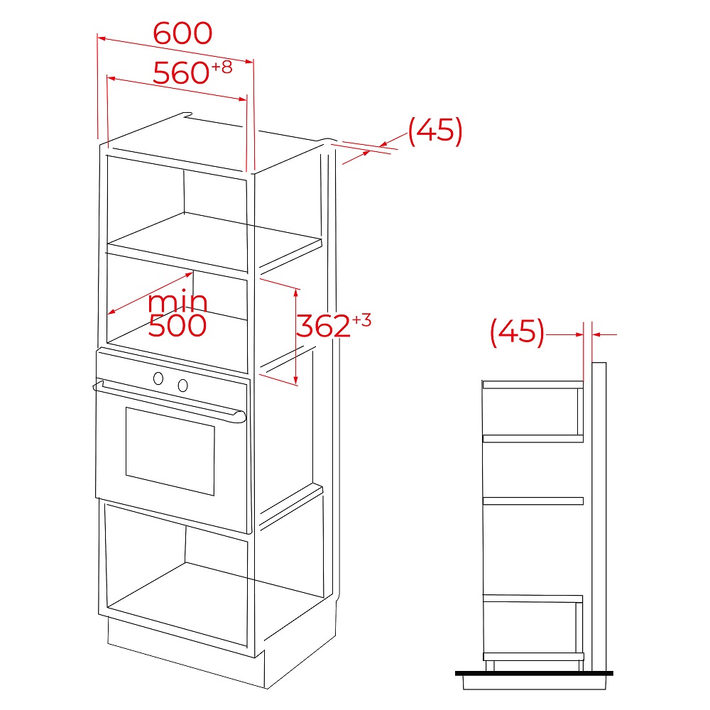 - Εσωτερικό βάθος (mm) : 316