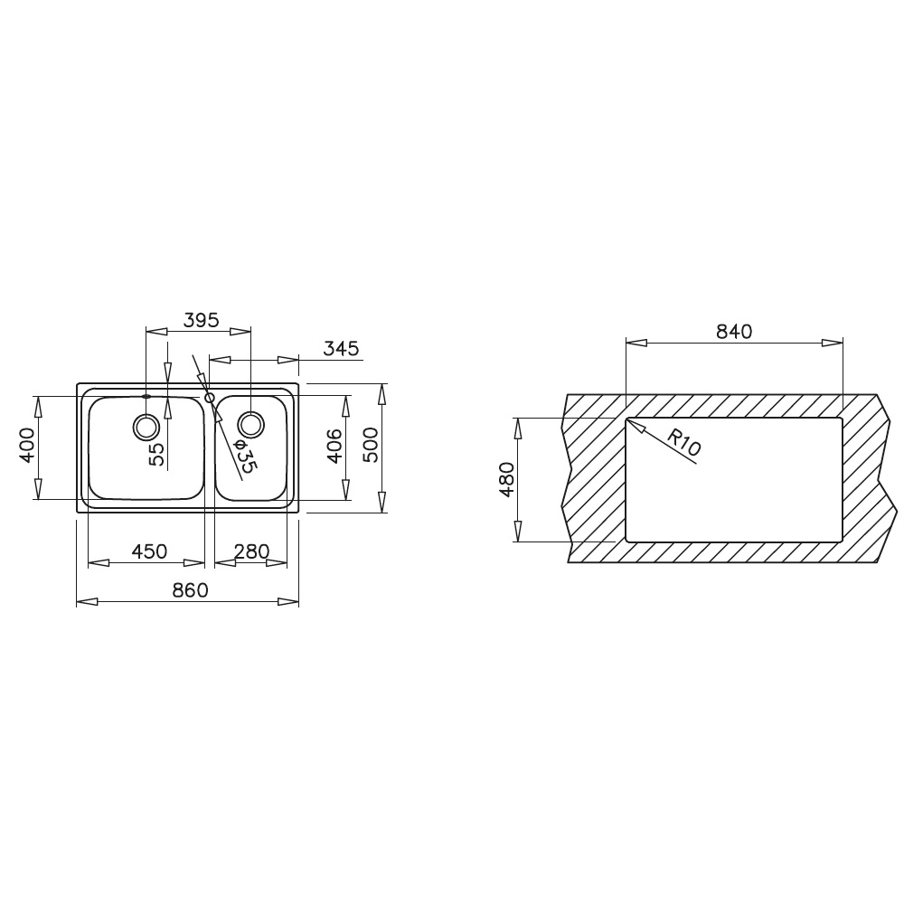 - 86 x 50 cm – για έπιπλο 90 cm (οριακά 80 cm)